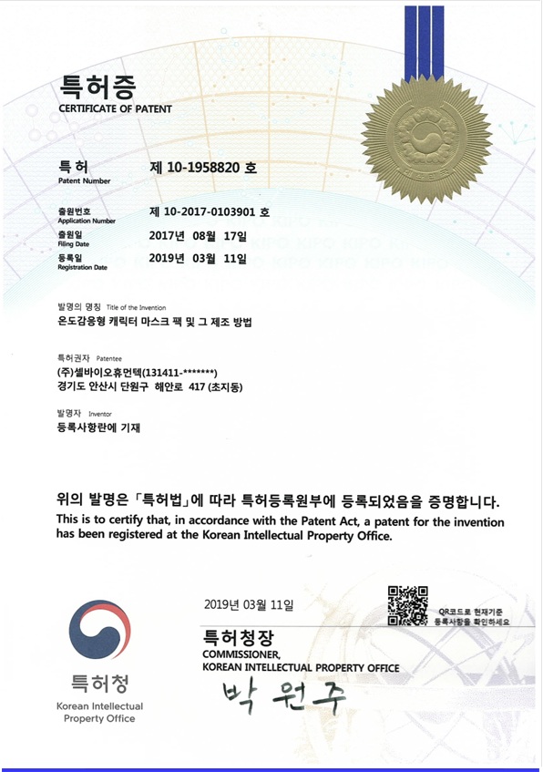 THERMOSENSITIVE CHARACTER FACIAL MASK PACK AND METHOD OF MAN…