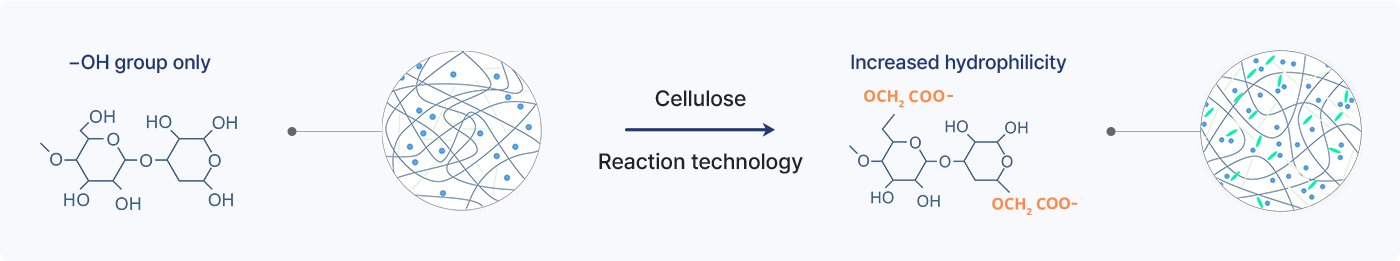 Cell Bio Human Tech's cellulose reaction technology increases the hydrophilicity,